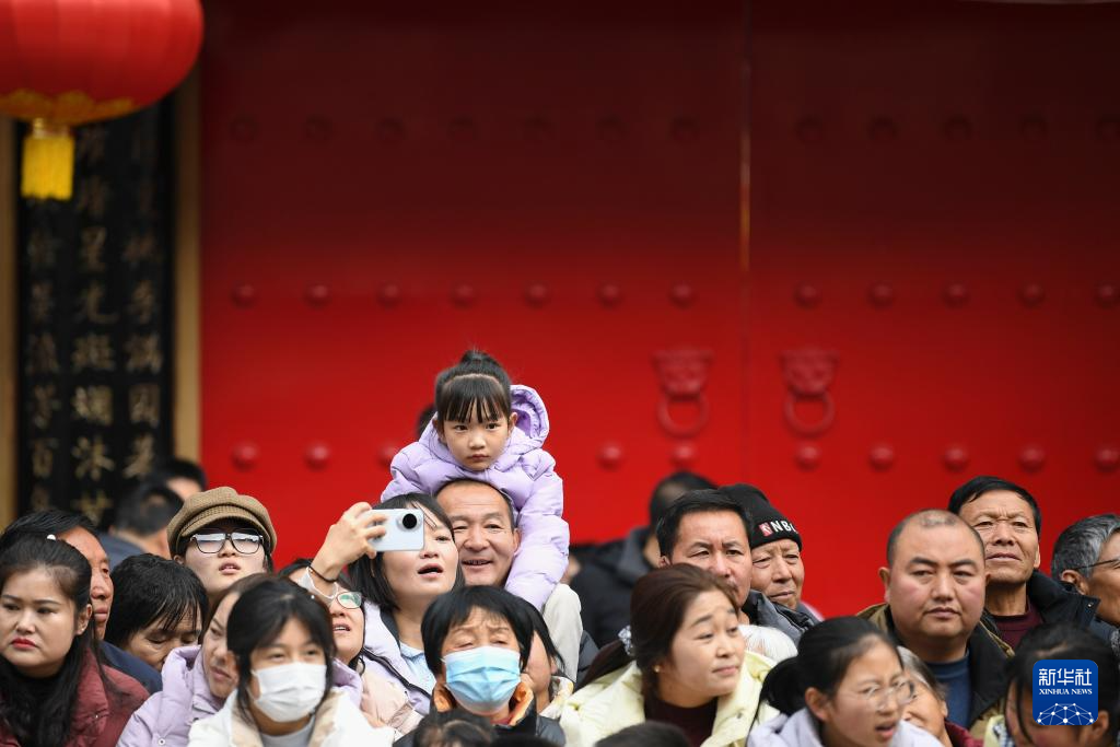 3月3日,观众在陇县元宵节社火巡游活动上观看表演。