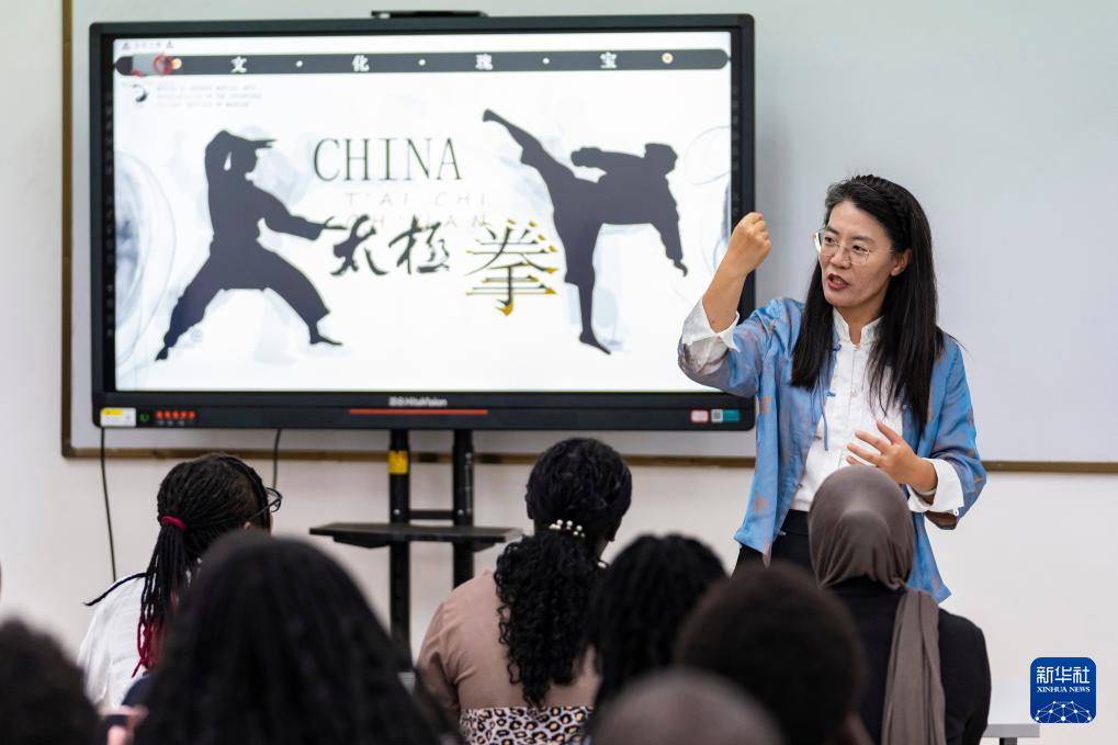 3月18日,在肯尼亚内罗毕大学孔子学院,中方院长王尚雪为当地学生讲授太极拳相关知识。