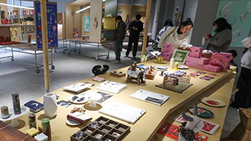 3月26日,学生展示自己制作的面塑文创书签。