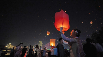 瀾滄江畔孔明燈點(diǎn)亮夜空