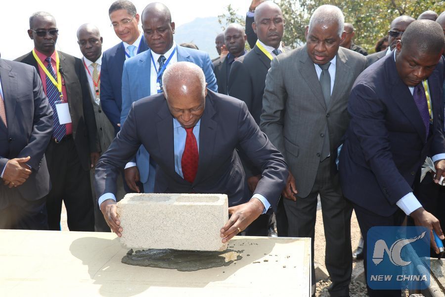 Then Angolan President Jose Eduardo dos Santos (front) inaugurated the construction of the Caculo Cabaca Hydropower Project in Dondo, Angola on Aug. 4, 2017. Located at the North Kwanza province, the hydropower project will be constructed by China Gezhouba Group Co., Ltd. The project has a total contractual value of 4.5 billion U.S. dollars and has a planned installed capacity of 2,172 megawatts. The project will be completed within 80 months, and during the peak construction period nearly 10,000 jobs are expected to be provided for the locals. (Xinhua)