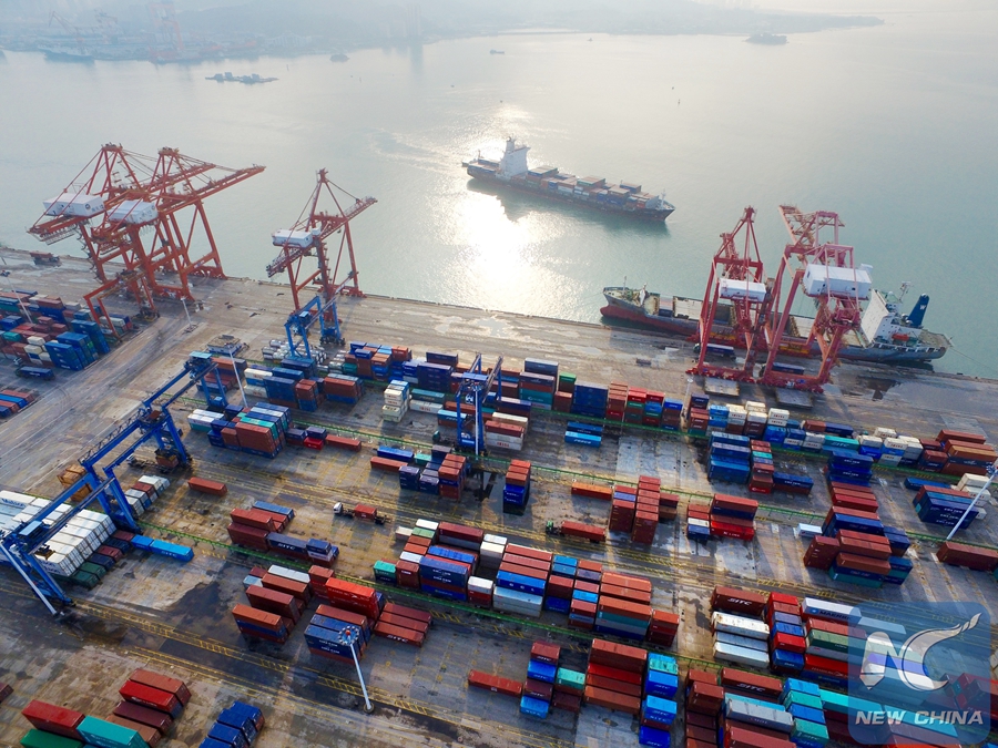 An aerial view of a port in a pilot free trade zone in Xiamen, east China's Fujian Province. (Xinhua)