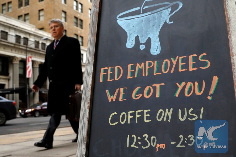 A worker passes a cafe offering free coffee to federal employees near the White House during the government shutdown in Washington, U.S., January 22, 2018. (Xinhua/REUTERS)