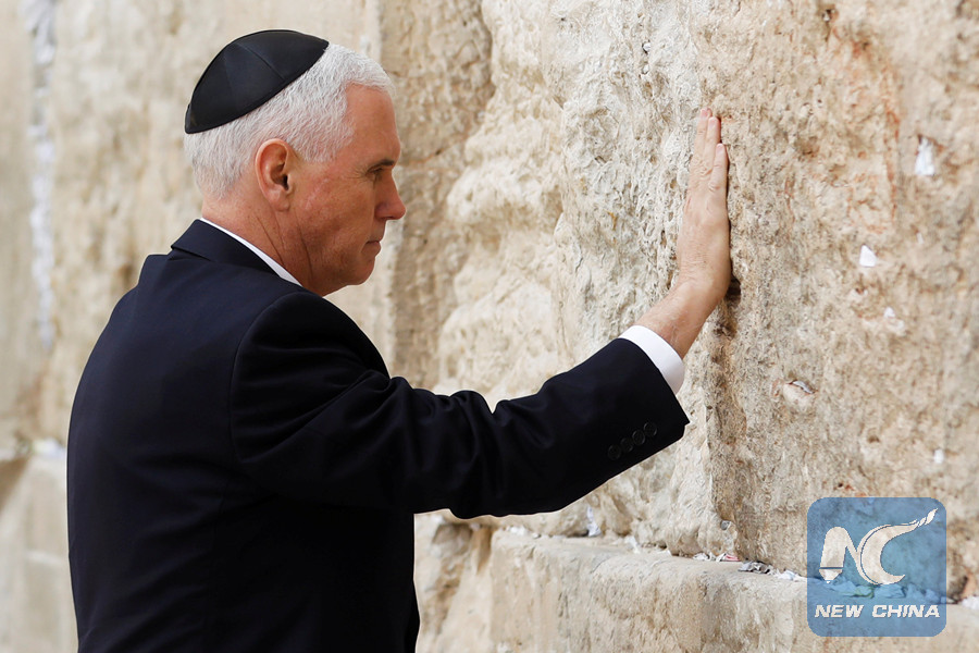 JERUSALEM, Jan. 23 (Xinhua) -- U.S. Vice President Mike Pence visited Jerusalem's Western Wall on Tuesday, as the Palestinians declared a general strike to protest his pro-Israeli speech at the Israeli parliament on Monday.