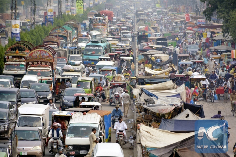 Photo taken on July 31, 2016 shows traffic jam on a busy road in eastern