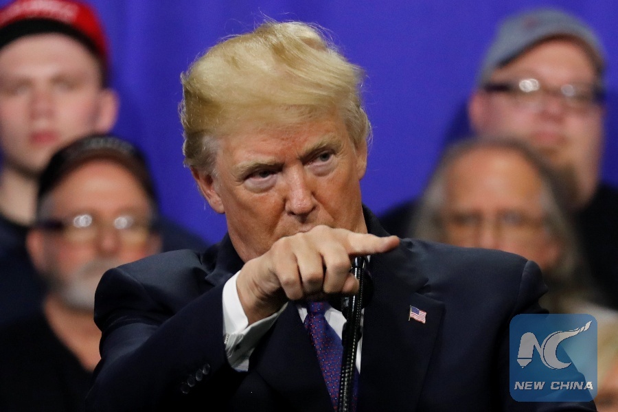 WASHINGTON, Feb. 5 (Xinhua) -- Days before the Winter Olympics kick off in South Korea, U.S. President Donald Trump is continuing to pressure the top leader of the Democratic People's Republic of Korea (DPRK), Kim Jong Un, to make him abandon his nuclear program.
