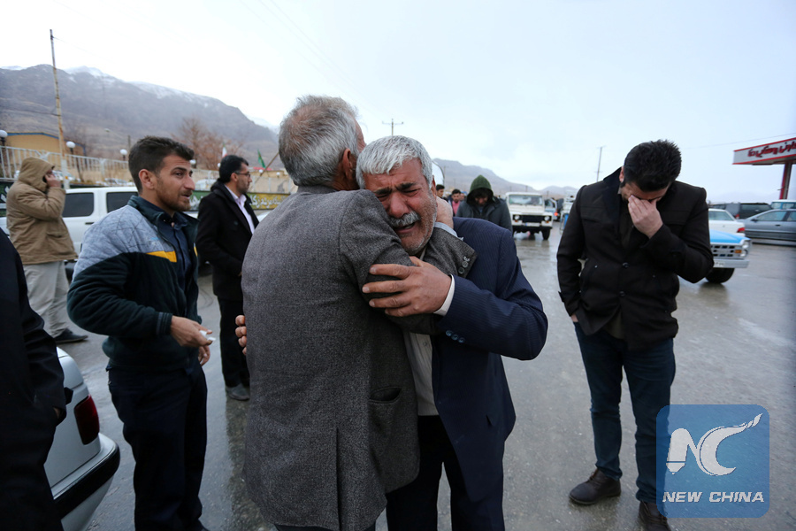 Relatives of passengers who were believed to have been killed in a plane crash react near the town of Semirom, Iran, February 18, 2017. (TASNIM PHOTO)