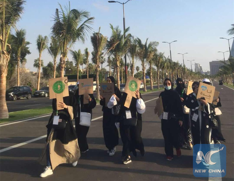 Saudi women go on a walking parade on March 8, 2018 in the coastal city of Jeddah on the occasion of the International Women's Day, the first massive public appearance of Saudi women in the kingdom's Islamic conservative society. (Xinhua/Tang Lin)