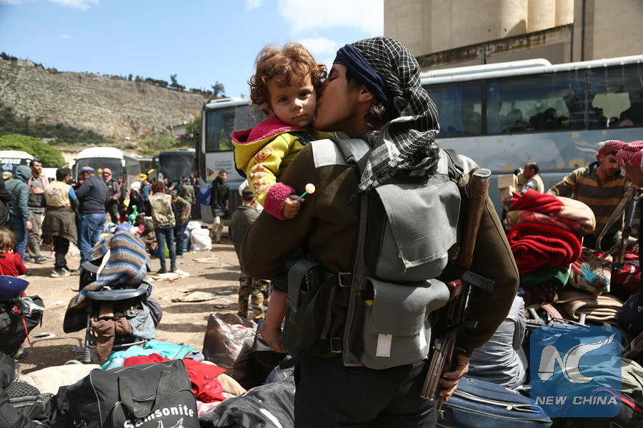 Earlier in the day, SANA said as many as 38,000 rebels and their families have evacuated central towns of Eastern Ghouta toward rebel-held areas in Idlib since the evacuation process started last Saturday.