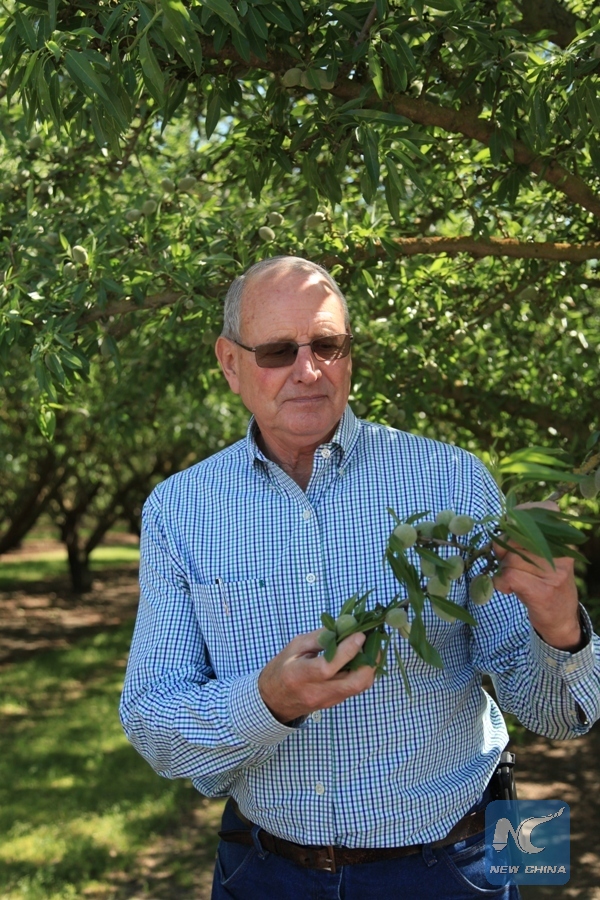 Photo taken on April 25, 2018 shows Californian almond grower Dave Phippen in Modesto, the United States. California's almond growers urge the United States and China to move forward to reach trade reconciliation. (Xinhua/Gao Shan)