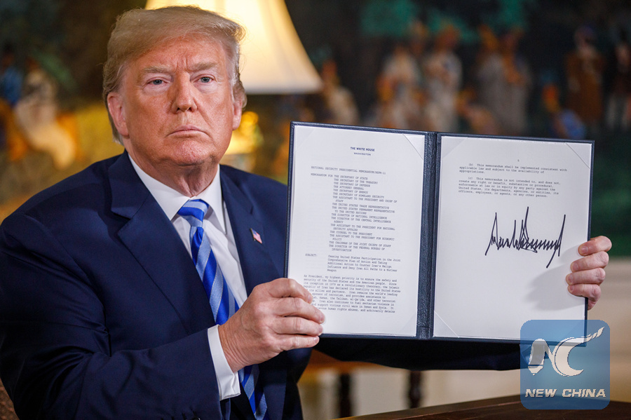 U.S. President Donald Trump said earlier in the day that the United States will withdraw from the Iran nuclear deal, a landmark agreement signed in 2015 by Iran, Russia, the United States, Britain, China, France and Germany.