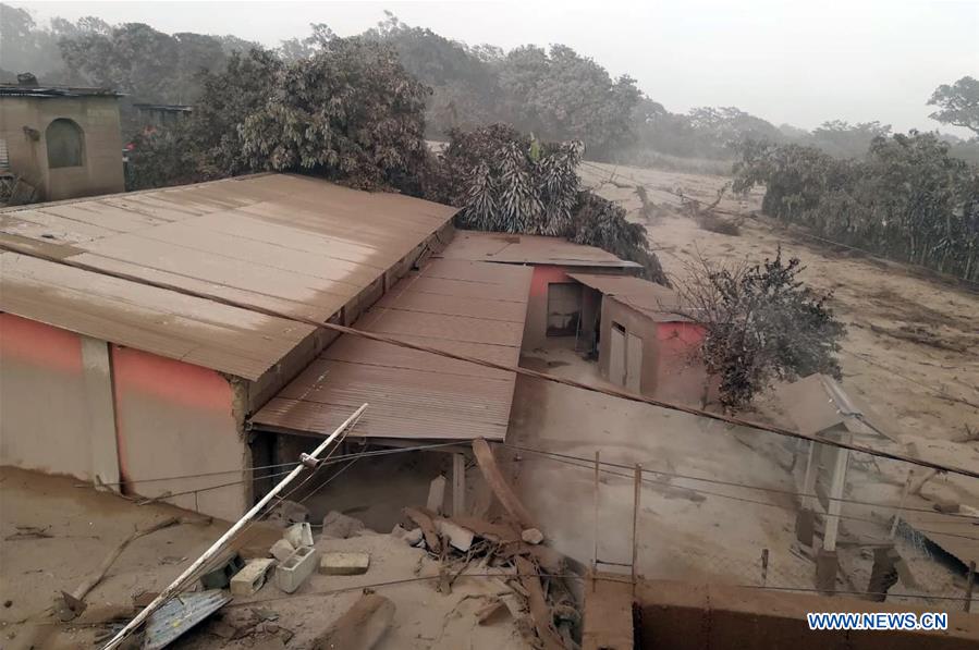 Photo taken on June 3, 2018, shows houses covered by ashes during the eruption of the "Volcan de Fuego", in Acatenango, Chimaltenango Department, Guatemala. (Xinhua/Prensa Libre)