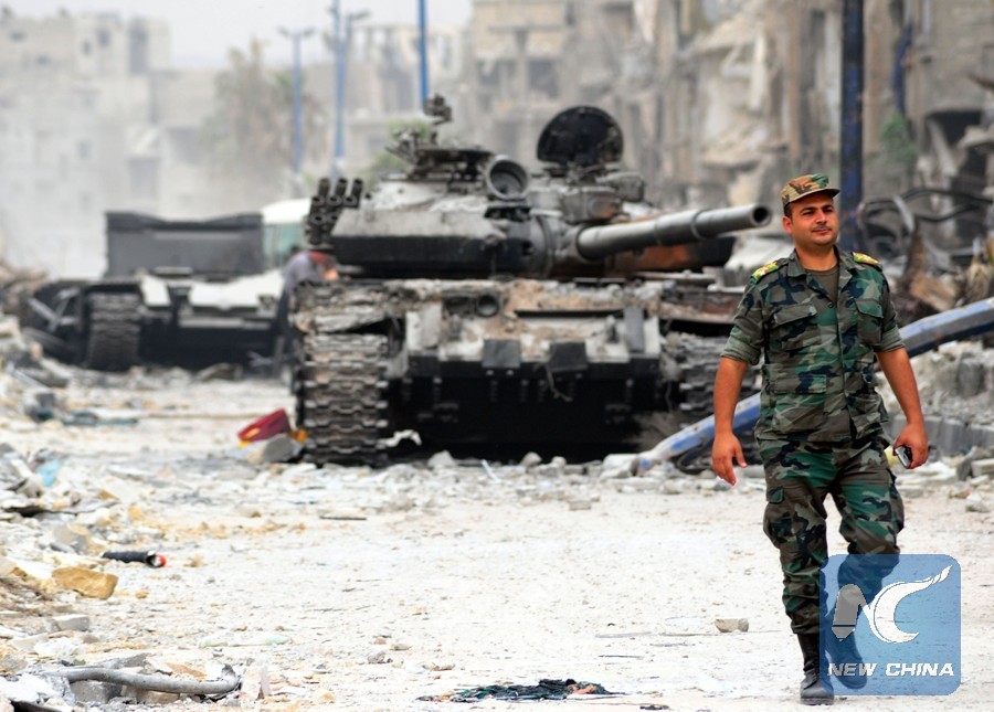 File Photo: A Syrian officer walks in the largely destroyed Hajar al-Aswad district, south of Damascus, Syria, on May 22, 2018, a day after it was declared free of the Islamic State (IS) militants. (Xinhua/Ammar Safarjalani)