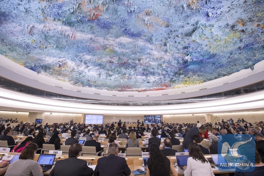 Delegates attend a special session of the UN Human Rights Council in Geneva, Switzerland, May 18, 2018. (Xinhua/Xu Jinquan)