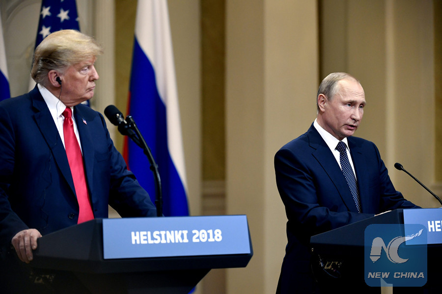 U.S. President Donald Trump and Russia's President Vladimir Putin attend their joint news conference in the Presidential Palace in Helsinki, Finland July 16, 2018. (Reuters photo)