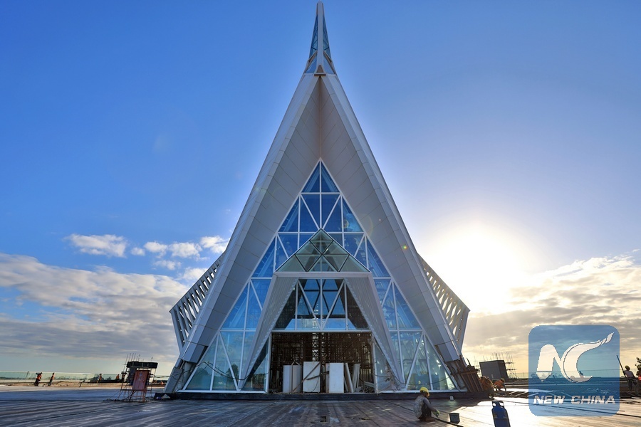 Its novel architectural design of symmetric and triangle elements towering to the sky in a simplified and modern expression presents a striking sense of power and grandeur, and its well-elaborated configuration in functionality of arts gallery, exhibition, wedding, KTV, cinemas, leisure and entertainment, water-curtain lighting show and open-air performance stands all in one.