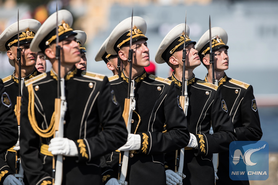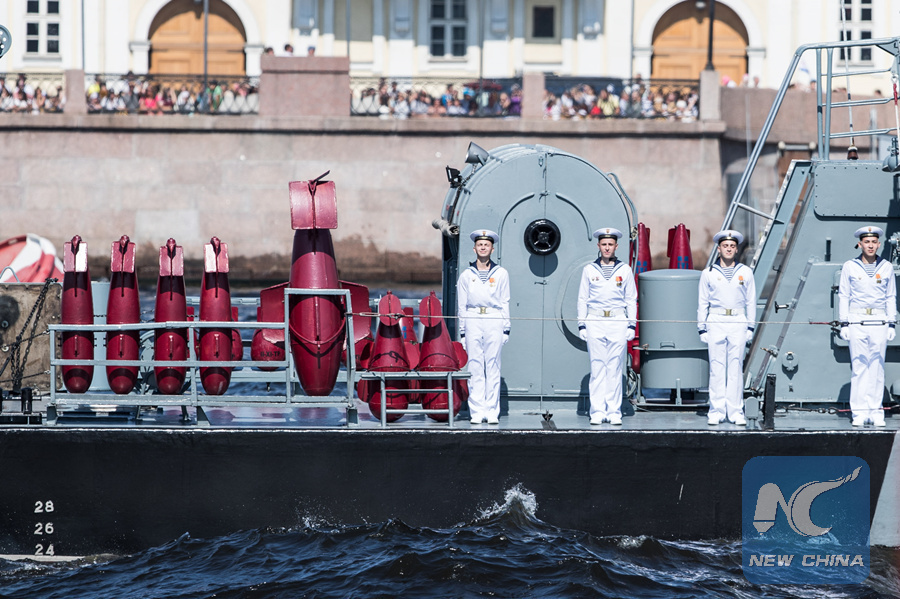 Russian Navy personnel attend the Main Naval Parade to mark Russian Navy Day in St. Petersburg, Russia on July 29, 2018. (Xinhua/Wu Zhuang)