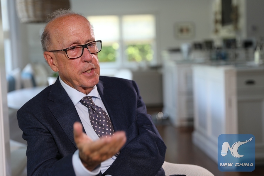 Stephen Roach, former chairman of Morgan Stanley Asia and senior fellow at Yale University's Jackson Institute for Global Affairs, speaks in an interview with Xinhua News Agency in Long Island, New York, the United States, on Aug. 9, 2018. (Xinhua/Zhang Mocheng)