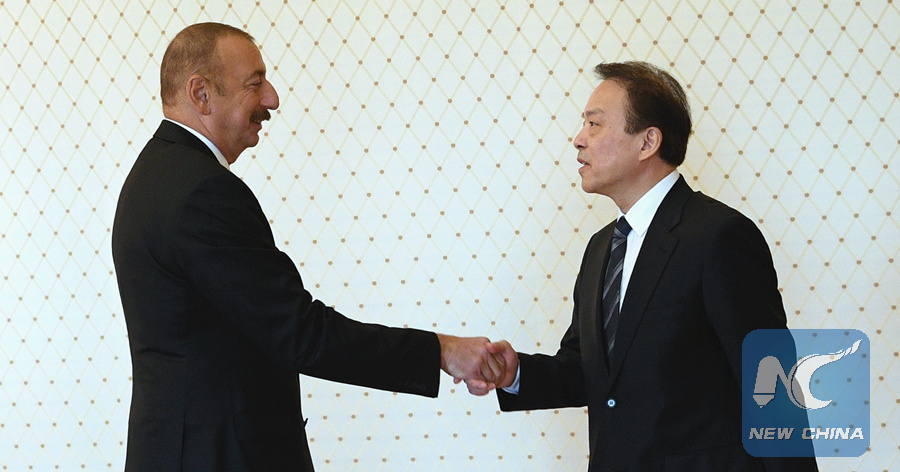 BAKU, Sept. 17 (Xinhua) -- Azerbaijani President Ilham Aliyev met with Xinhua News Agency's Editor-In-Chief He Ping here on Monday and said that he hopes media outlets play a bigger role in strengthening Azerbaijan-China relations.