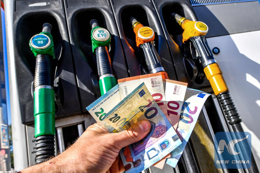 A man holds in his hand Euro banknotes at a petrol station on Sept. 25, 2018, in Lille, north of France. (AFP photo)