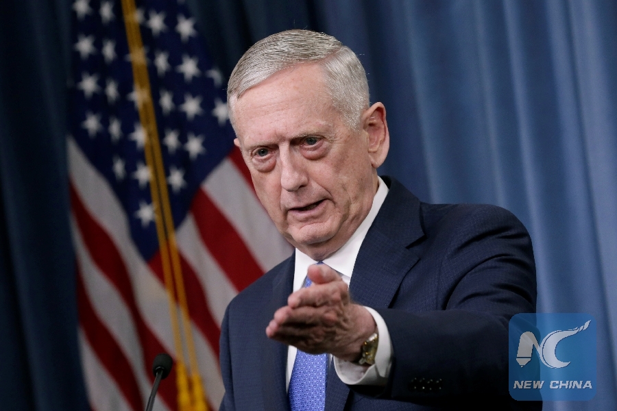 File Photo: U.S. Defense Secretary James Mattis gestures during a press briefing on the campaign to defeat ISIS at the Pentagon in Washington, U.S., May 19, 2017. (Xinhua/REUTERS)