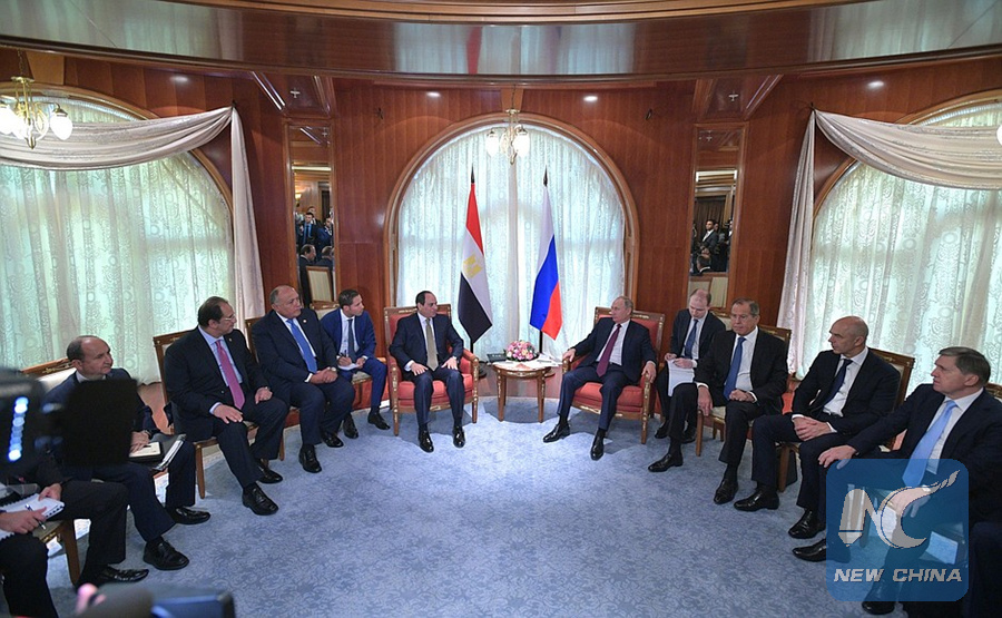 MOSCOW, Oct. 17 (Xinhua) -- Russian President Vladimir Putin and his Egyptian counterpart, Abdel Fattah al-Sisi, signed an agreement Wednesday on comprehensive partnership and strategic cooperation between the two countries, the Kremlin said.