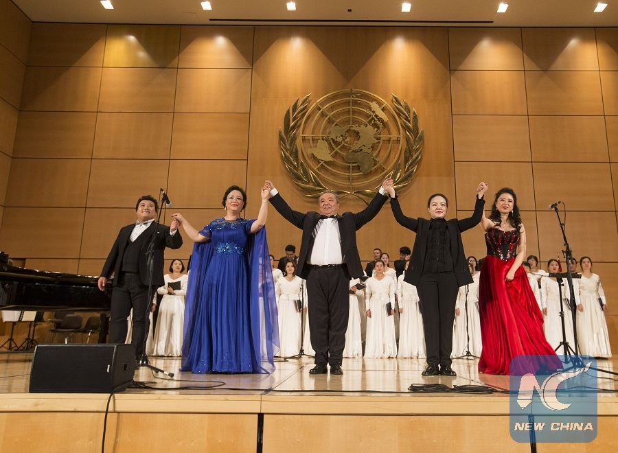 The concert, jointly sponsored by the Permanent Mission of China to the UN in Geneva and the UN headquarters in Geneva, was performed by some 60 artists from the China National Opera House, together with a few local European artists.