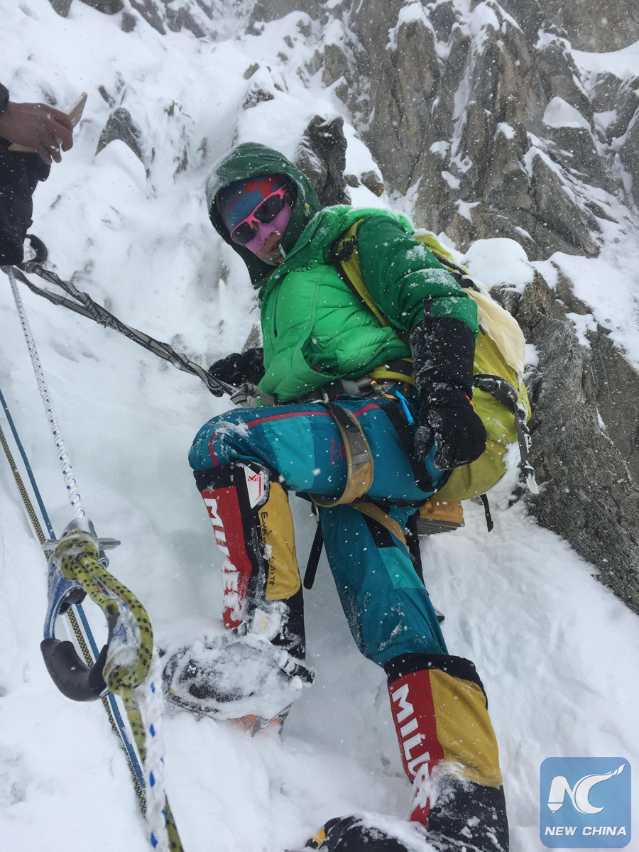 Photo taken on April 13, 2018 shows Luo Jing climbing Nanga Parbat in north Pakistan. (Xinhua)