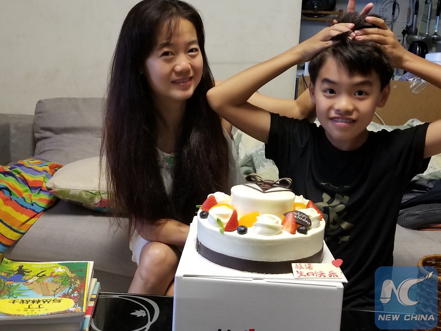 Photo taken on July 15, 2018 showing Luo Jing celebrates her son's birthday in Beijing, capital of China. (Xinhua)