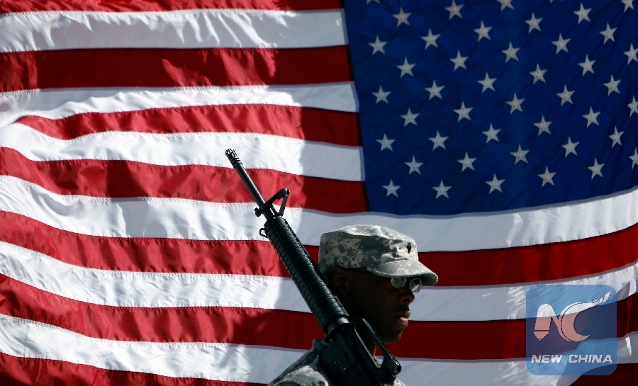 File Photo: A U.S. soldier holds his rifle in front of a U.S. flag during a Memorial Day observance ceremony at the Bagram airbase, north of Kabul May 25, 2009. (Xinhua/REUTERS)