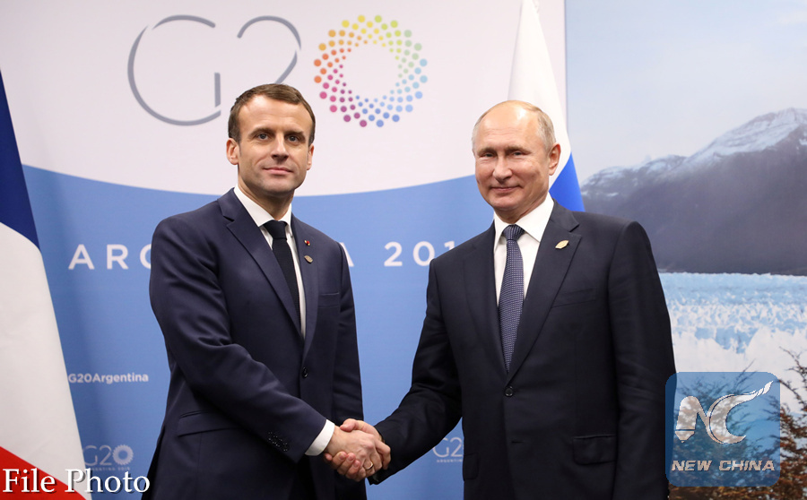 MOSCOW, Feb. 16 (Xinhua) -- Russian President Vladimir Putin and his French counterpart Emmanuel Macron agreed during a phone conversation to continue coordination of the two countries in order to facilitate the peace settlement in Syria, the Kremlin said Saturday.