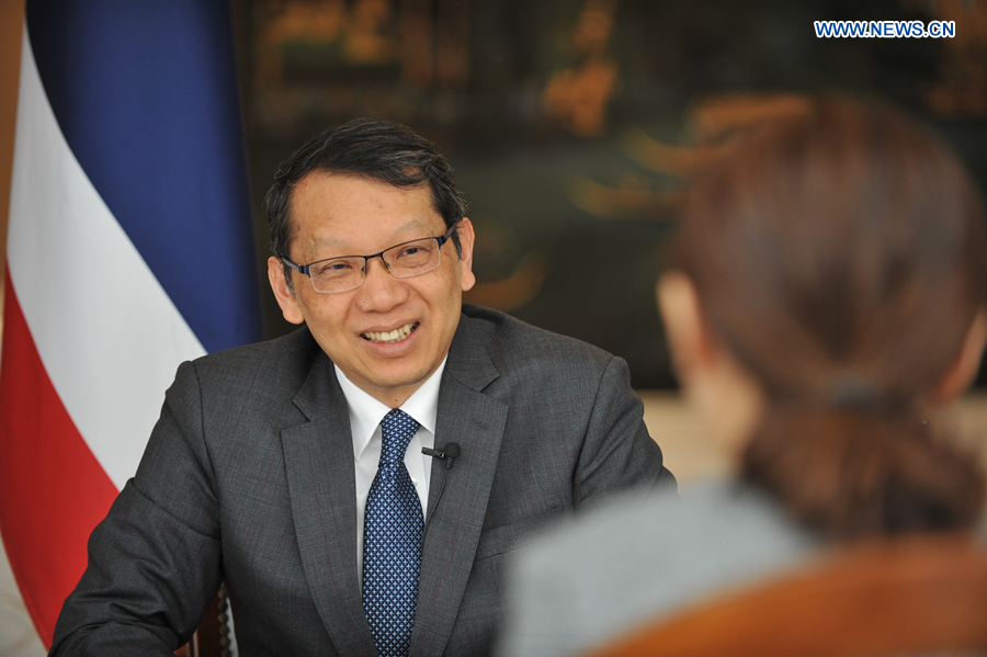 Thailand's ambassador to China Piriya Khempon accepts an interview with Xinhuanet in Beijing, capital of China, February 27. (Xinhuanet/ Xu Xin)