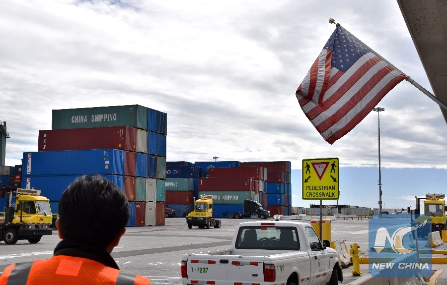 File Photo: Containers of China COSCO Shipping Corporation Limited are seen at the Port of Long Beach, Los Angeles County, the United States, on Feb. 27, 2019. (Xinhua/Li Ying)