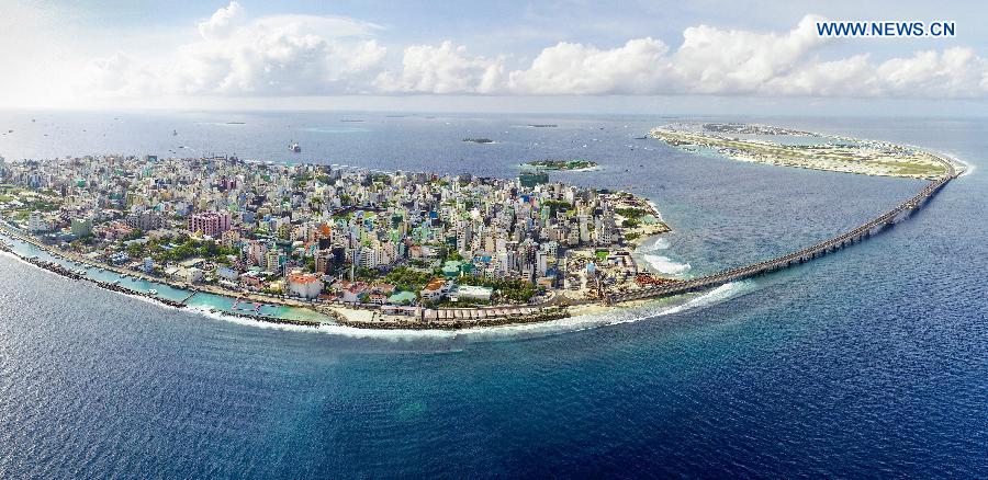 Photo taken on Aug. 22, 2018 shows a view of the China-Maldives Friendship Bridge in the Maldives. (Xinhua/Wang Mingliang)