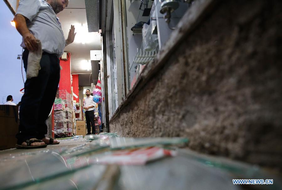 An Israeli man looks at damaged items in a building that was damaged by a rocket fired from the Gaza Strip, in the southern Israeli city of Ashdod, on May 6, 2019. A ceasefire deal that has been reached between Israel and Palestinian resistance factions in Gaza has come into effect on Monday dawn. (Xinhua/Gil Cohen Magen)