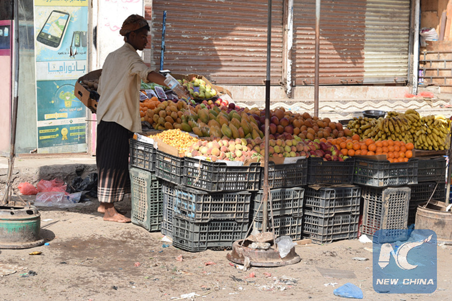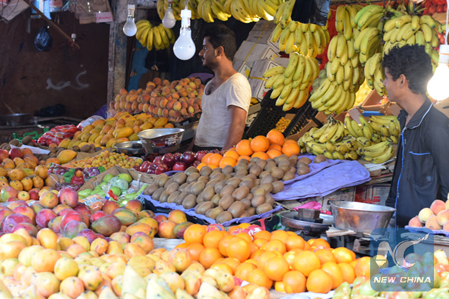 People in the war-ridden Yemen complain about soaring prices of vegetables, fruits and other essentials as Ramadan began, a holy month in which Muslims worldwide abstain from eating and drinking from dawn to dusk. (Xinhua/Murad Abdo)