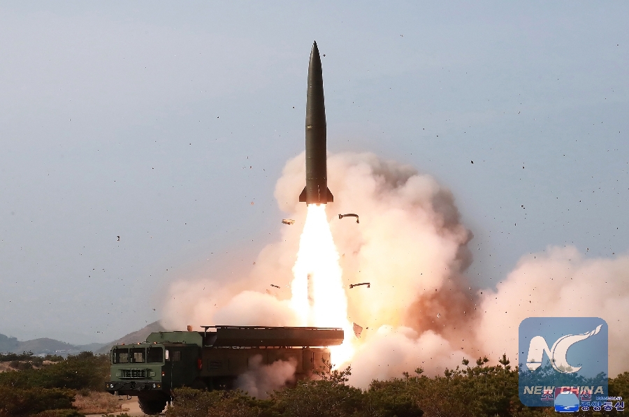 Photo provided by Korean Central News Agency (KCNA) on May 5, 2019 shows the site of a strike drill of defense units of the Democratic People's Republic of Korea (DPRK). (Xinhua/KCNA)
