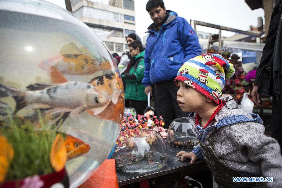 A boy looks at goldfish in Tajrish bazaar in Tehran, Iran, March 18, 2019, ahead of Nowruz or the Iranian New Year. China will hold the Conference on Dialogue of Asian Civilizations starting from May 15. Under the theme of "exchanges and mutual learning among Asian civilizations and a community with a shared future," the conference includes an opening ceremony and sub-forums. (Xinhua/Ahmad Halabisaz)