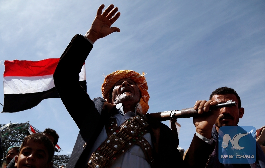A Yemeni man takes part in a rally staged to commemorate the fourth anniversary of the war erupted on March 26, 2015, in Sanaa, Yemen, on March 26, 2019. (Xinhua/Mohammed Mohammed)