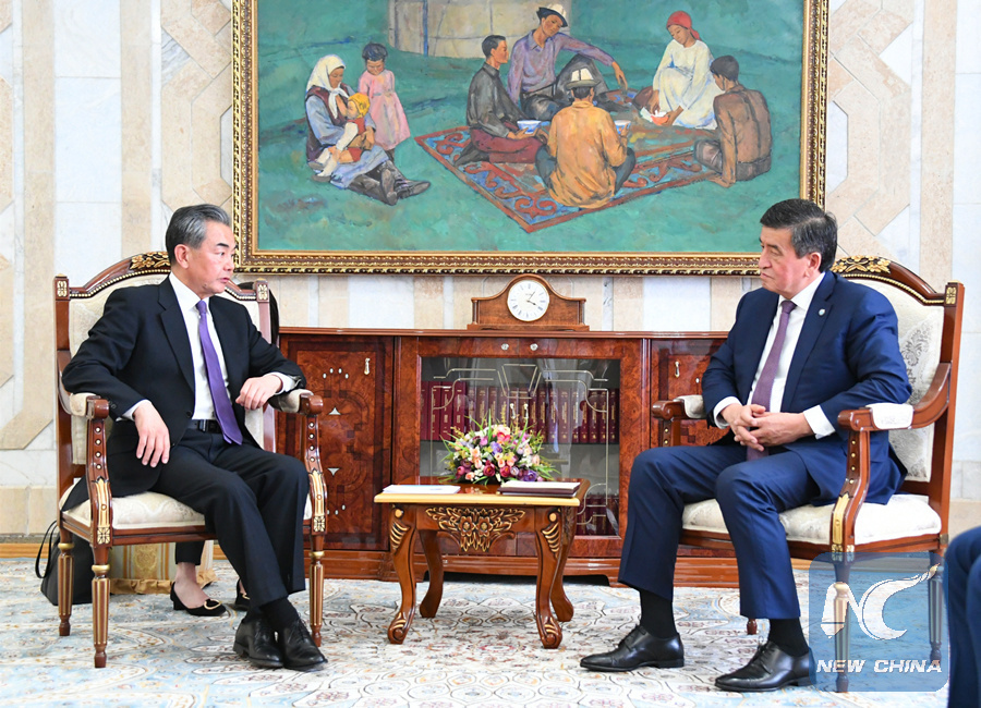 During a meeting with Chinese State Councilor and Foreign Minister Wang Yi, Jeenbekov said China has been providing Kyrgyzstan with a large amount of selfless and sincere assistance for a long time without imposing its will on others, adding that China is indeed Kyrgyzstan's good neighbor, good friend and good partner.