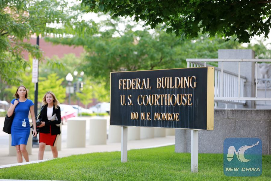 People walk by the Federal courthouse building in Peoria, Illinois, the United States, on June 3, 2019. (Xinhua/Wang Ping)