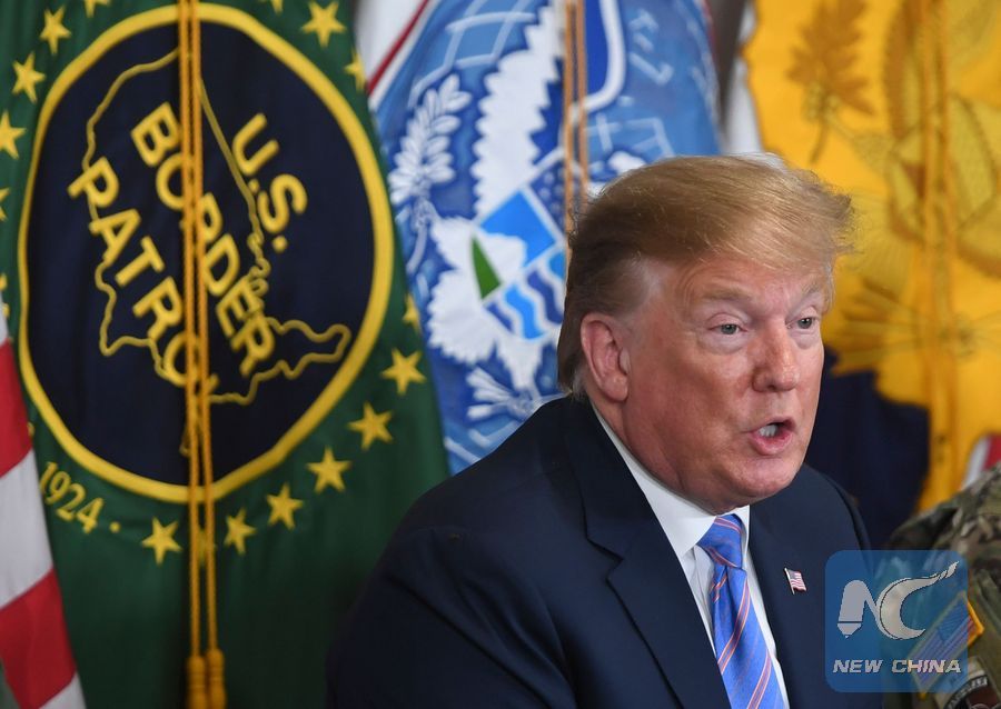 U.S. President Donald Trump speaks during a roundtable on immigration and border security at the U.S. Border Patrol Calexico Station in Calexico, California, April 5, 2019. (Xinhua/AFP/Saul Loeb)