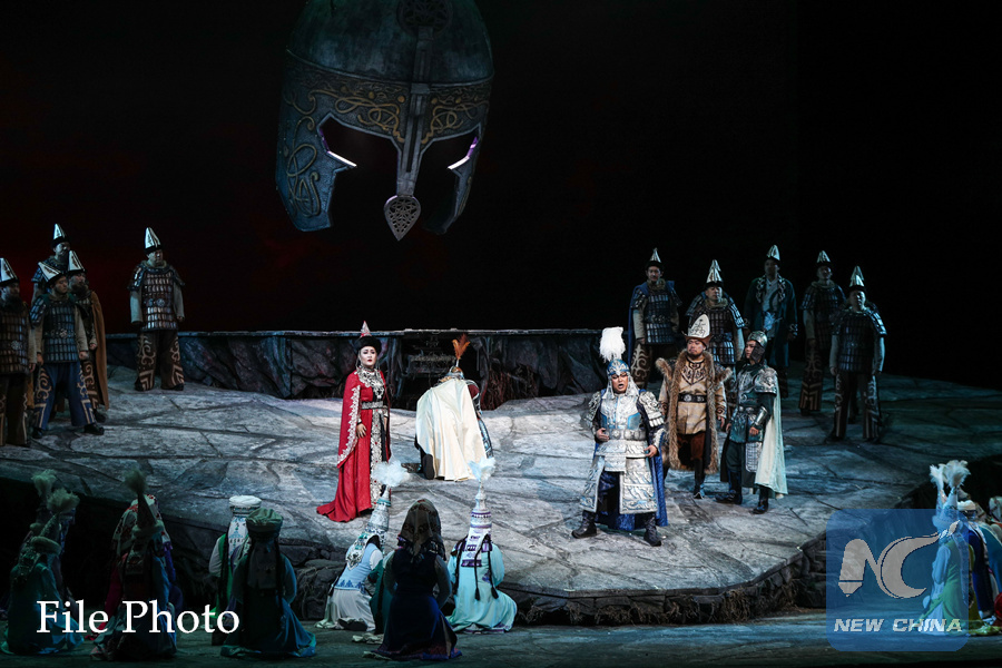 Actors perform in Chinese opera Manas at Beijing Tianqiao Performing Arts Center in Beijing, China on June 7, 2018. (Xinhua/Zheng Huansong)