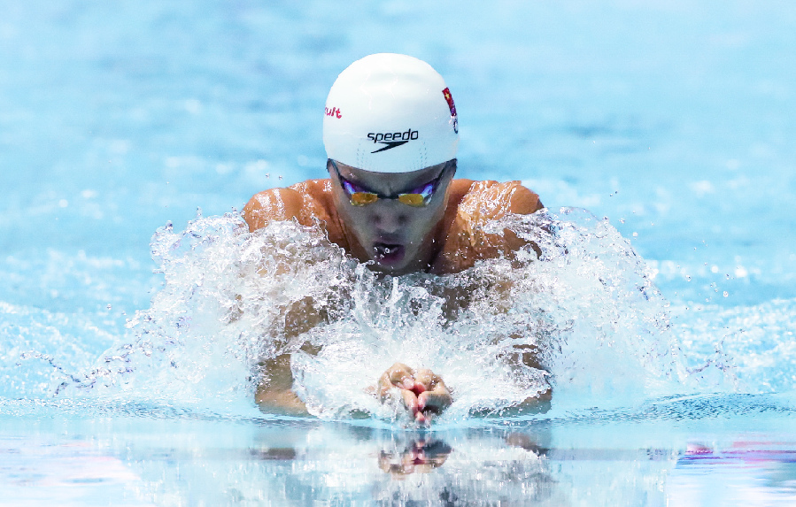 Bronze medalist Yan Zibei of China competes during the men's 100m breaststroke final at the Gwangju 2019 FINA World Championships in Gwangju, South Korea, July 22, 2019. (Xinhua/Wang Jingqiang)
