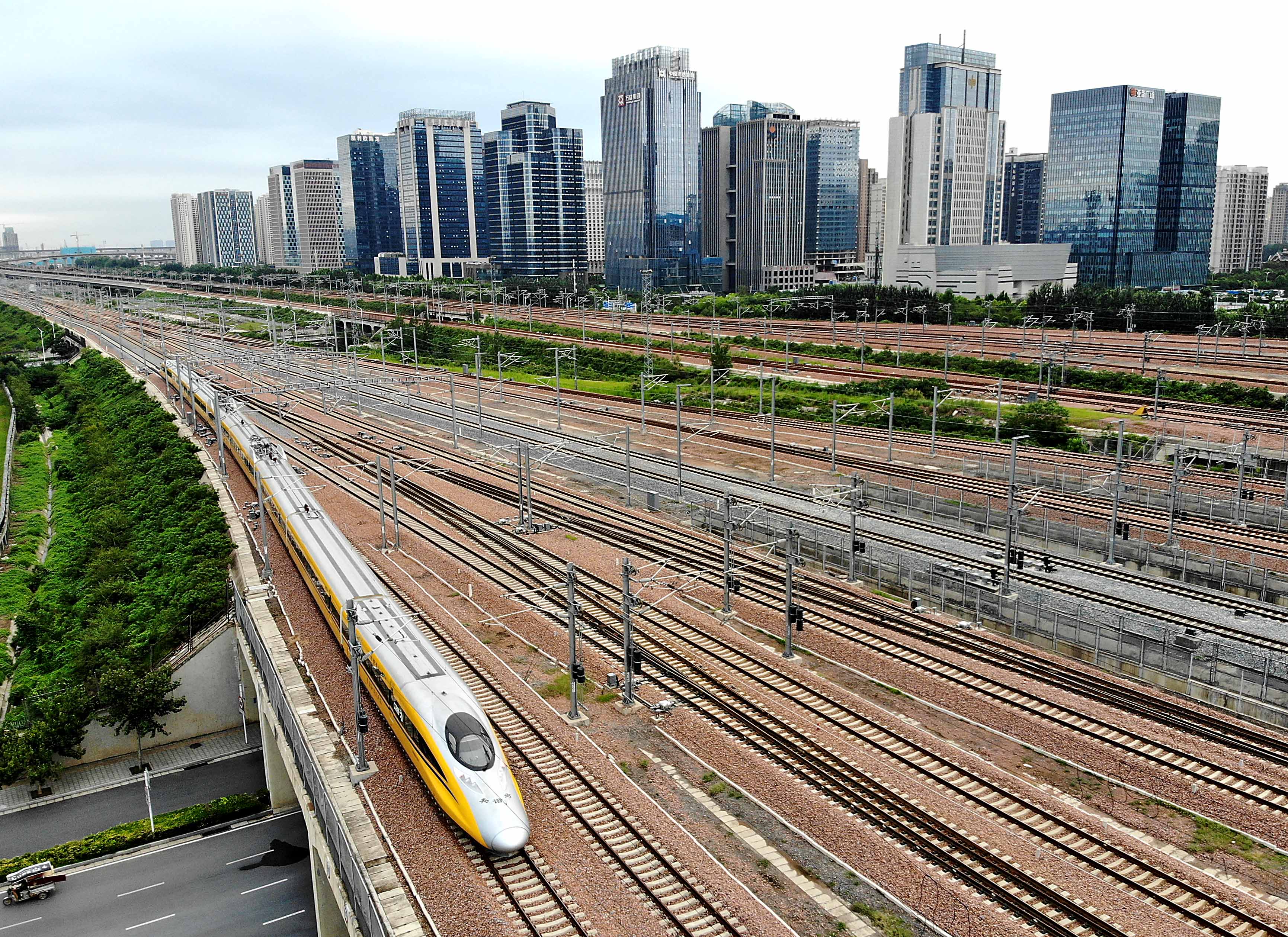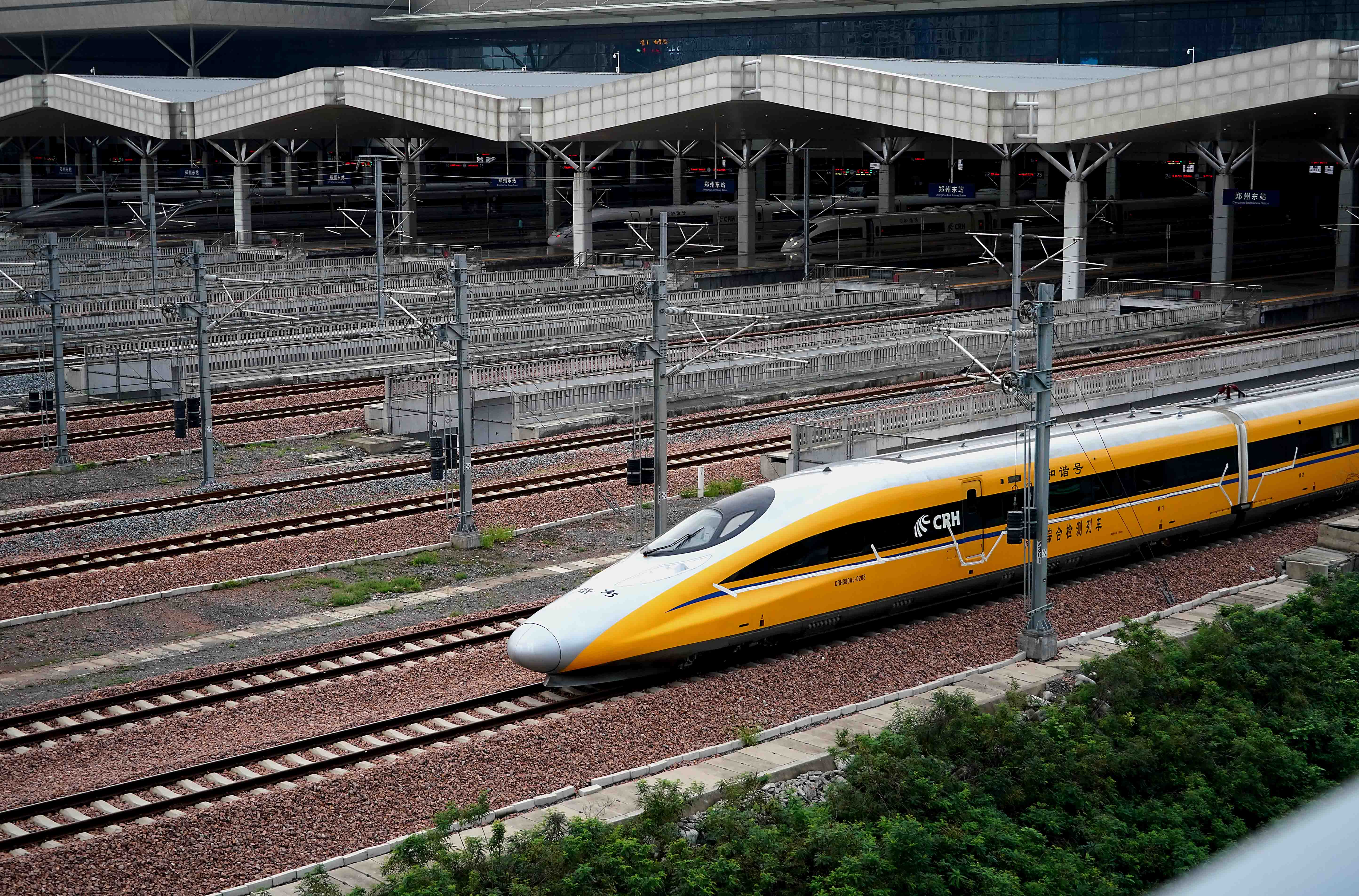 High-speed railway line linking central and southwest China starts joint test at the Henan section.
