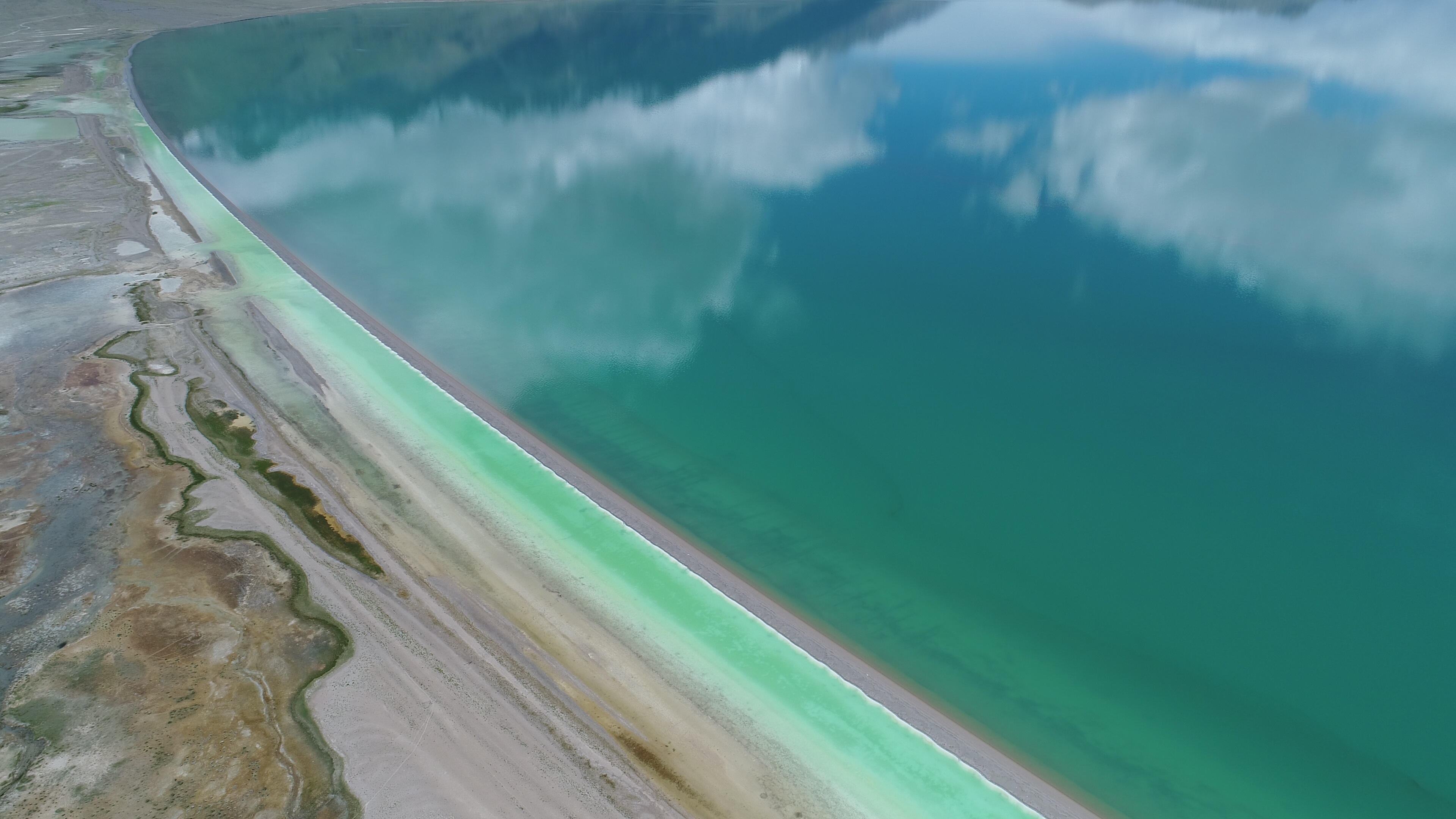 Tangra Yumco Lake in Nagqu, southwest China's Tibet Autonomous Region. (Xinhua/Purbu Zhaxi)