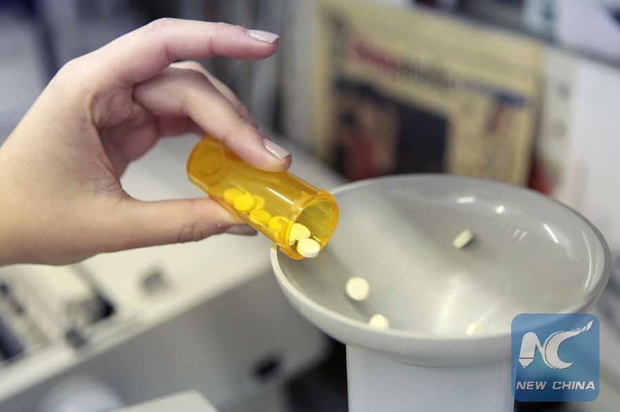 A pharmacy employee dumps pills into a pill counting machine as she fills a prescription while working at a pharmacy in New York in this file photo taken December 23, 2009. (Xinhua/REUTERS)
