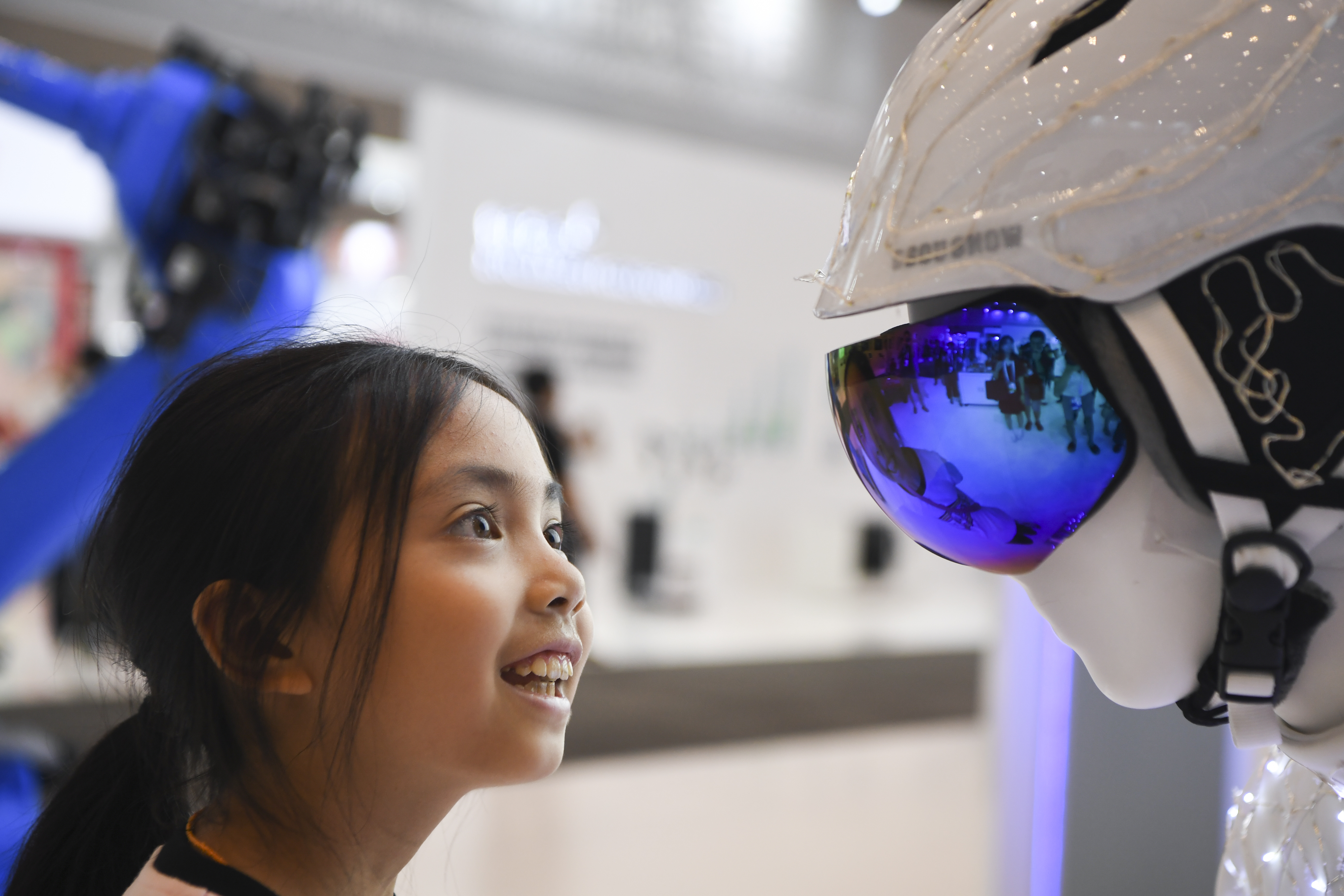 A girl visits the Smart China Expo in Chongqing, southwest China, Aug. 25, 2019. (Xinhua/Wang Quanchao)