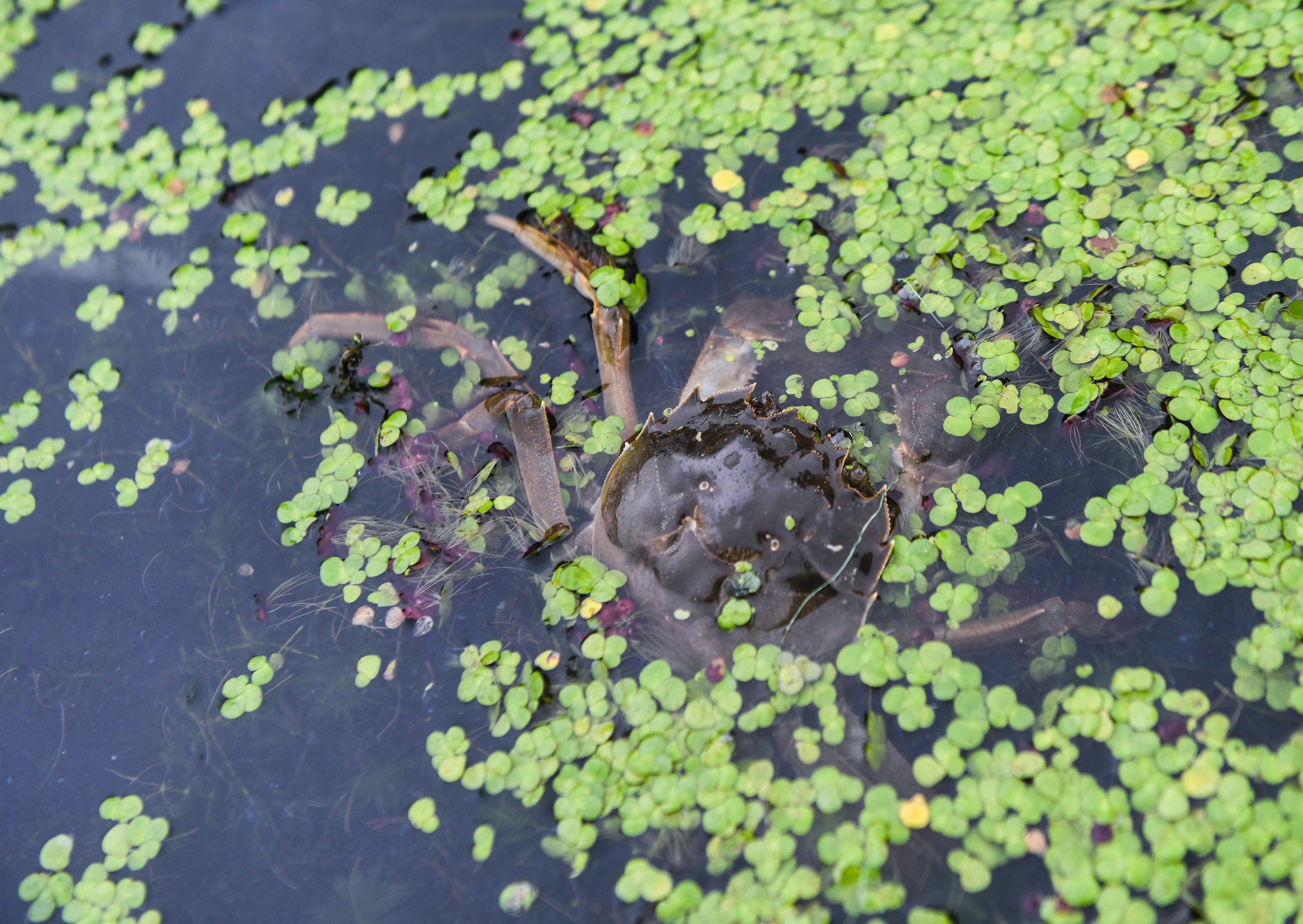 Photo taken on Sept. 4, 2019 shows a crab (L) and its shell at an aquaculture cooperative in Zhili Township of Huzhou, east China's Zhejiang Province.