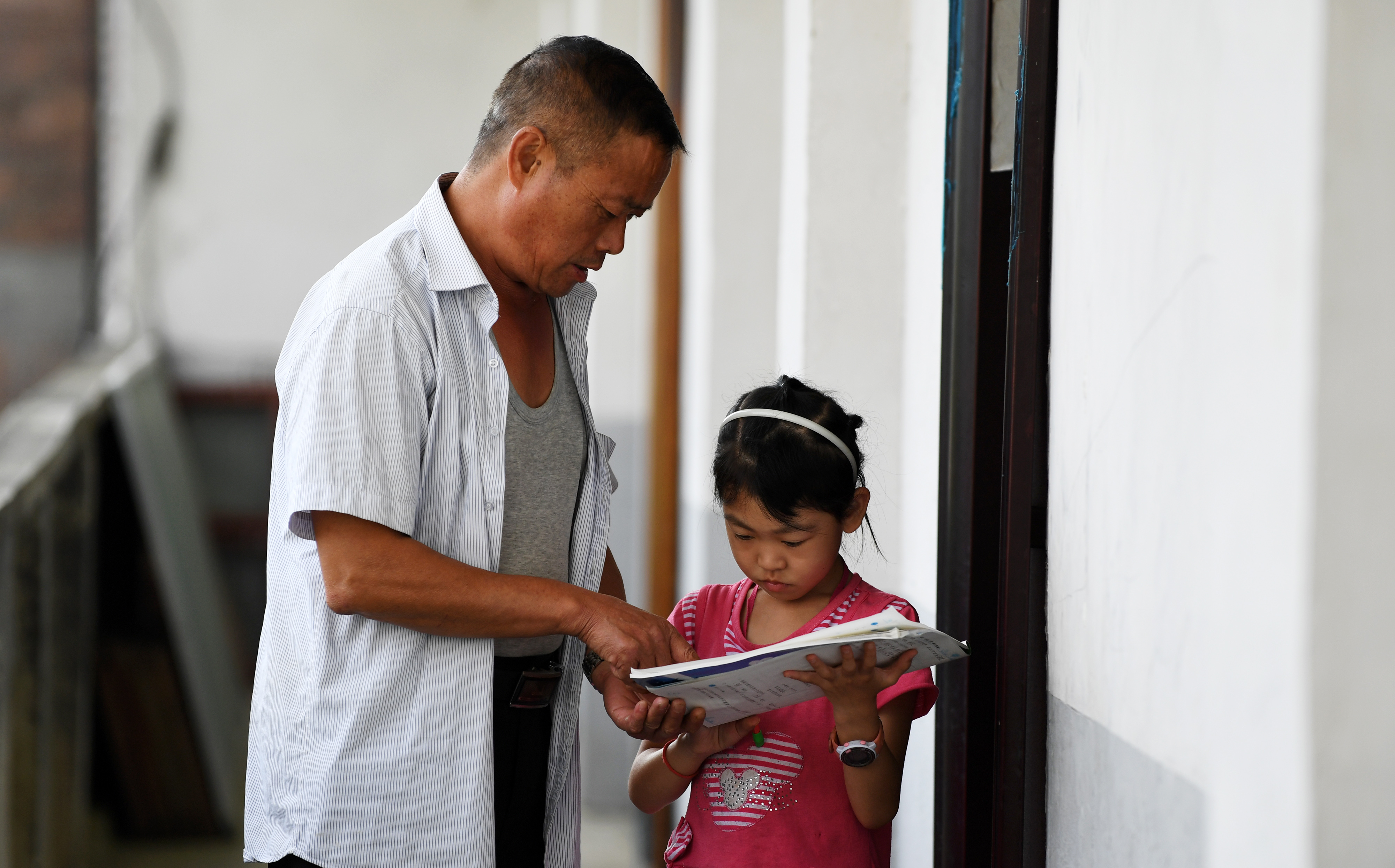 From 2013 on, the school saw less and less number of pupils as locals went out as migrant workers or relocated to better places. Now with only 11 first or second graders and 10 kindergarten children in the school, Jiang keeps teaching them together. For 37 years, Jiang has taught children while taking care of their daily life. "I love kids here and I want to be a teacher here forever." He said.